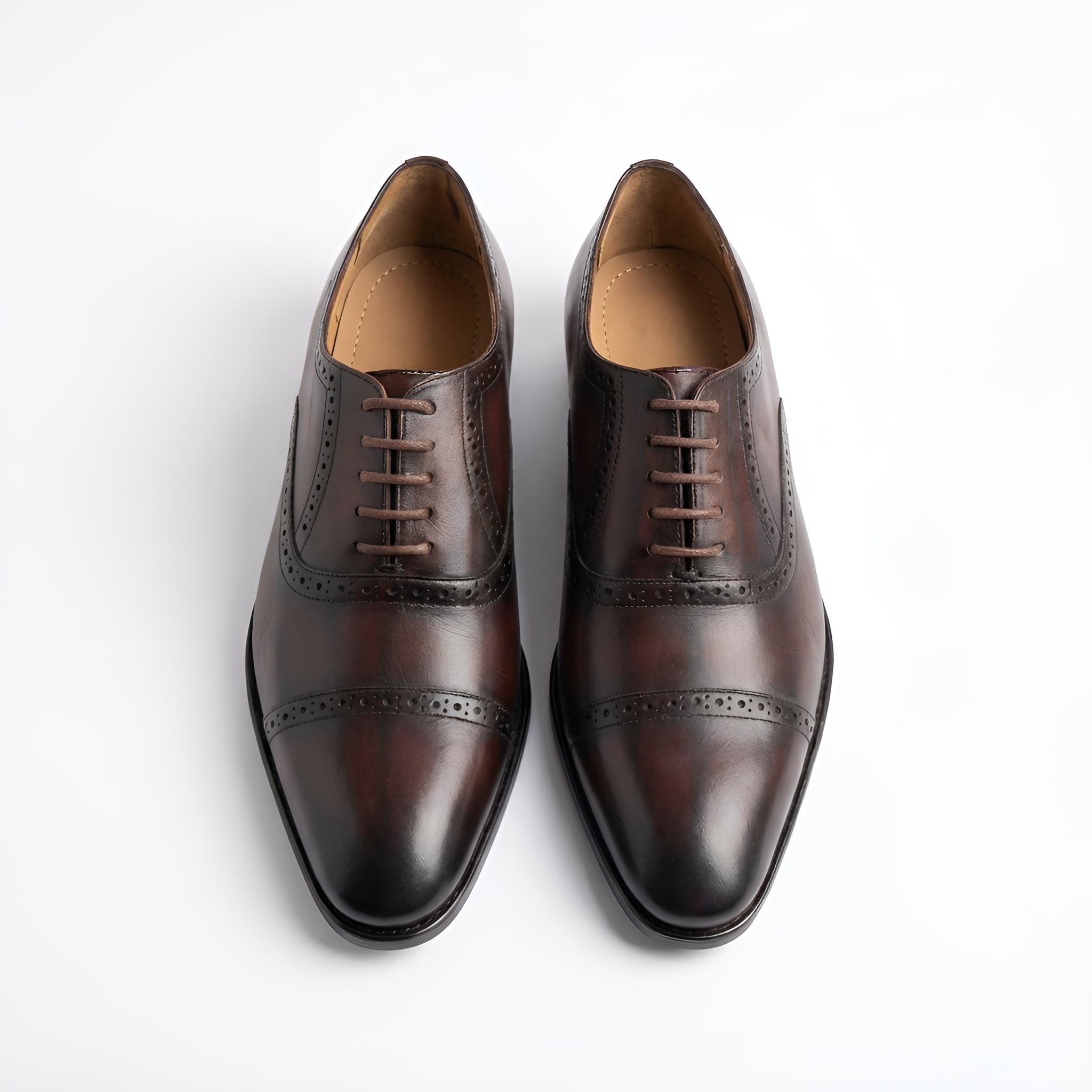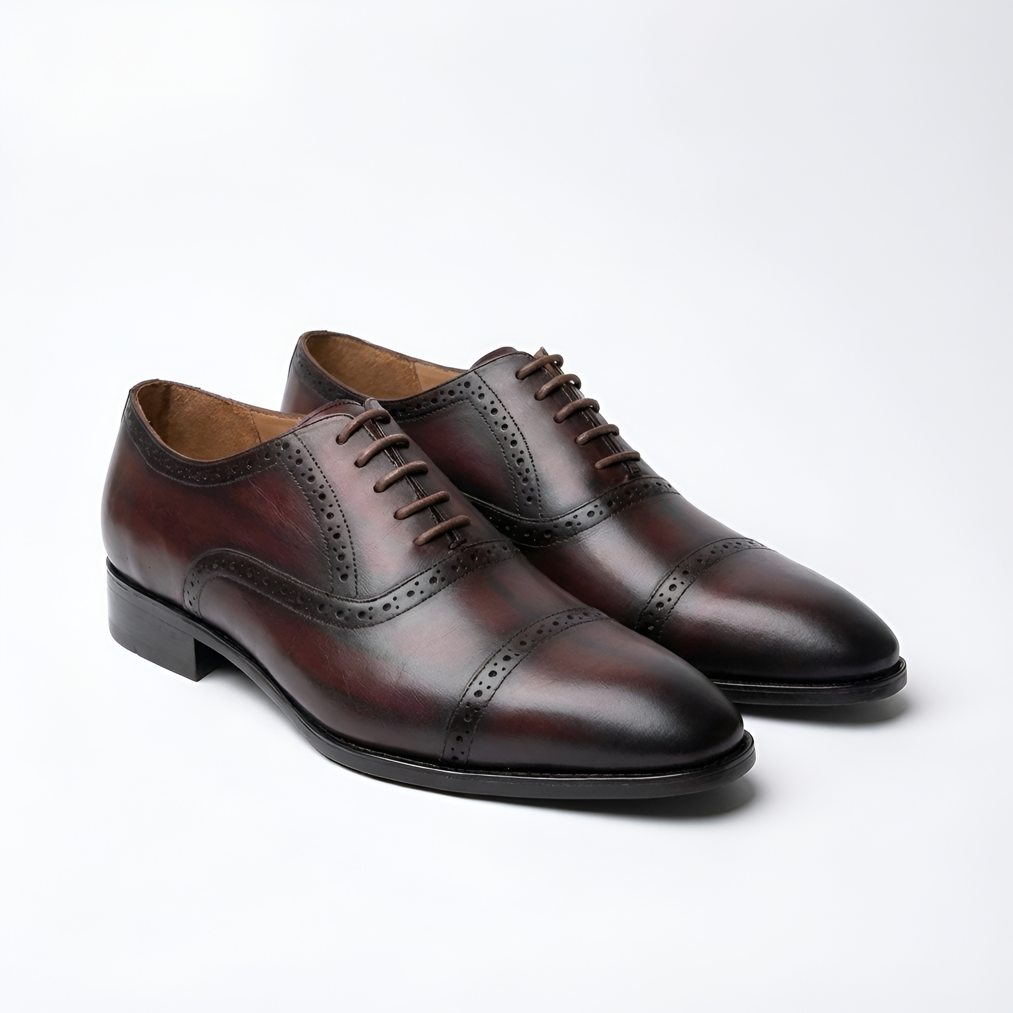 Cambridge Cap is a timeless men’s cap-toe Oxford shoe crafted for formal elegance and professional wear. Made from premium grain crust genuine leather, this shoe features a rich brush-off finish that enhances its depth of colour and gives it a distinguished, heritage appearance.